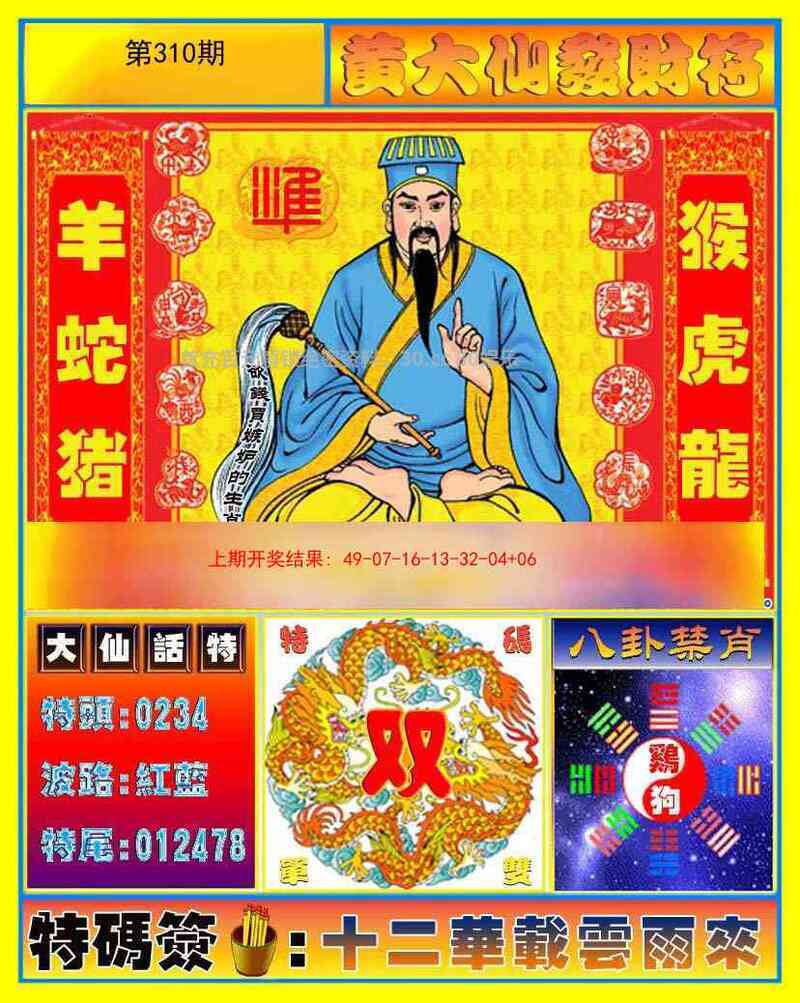 | 解:十二華載雲雨來,解天肖兔牛猪猴马龙 |